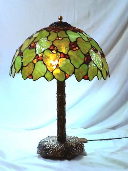 Tiffany zielone z bursztynem42 cm/wysokość ok57 cm